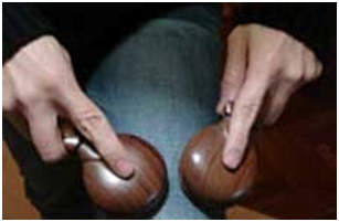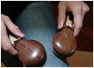 首先,一對響板都有高音和低音的差別,低音的象徵男性,高音象徵女性。正拍通常是在低音,所以我建議大家把低音放在常用的那隻手,或是拍子開始的那隻手。
